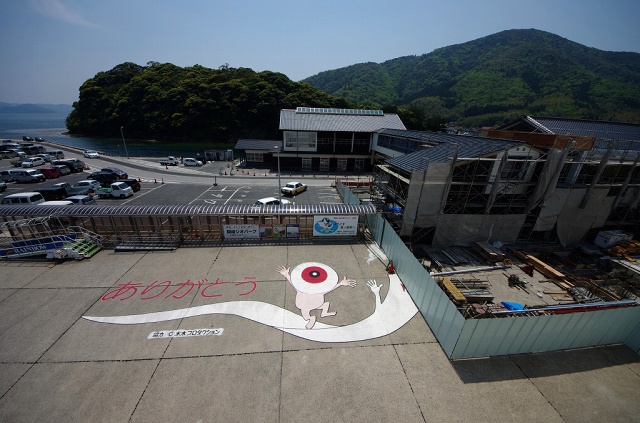 鳥取県の境港(から隠岐諸島にフェリーが出ています)出身の水木しげるにちなんでってわけじゃないんでしょうが、ねずみ男にぬりかべだそうです。