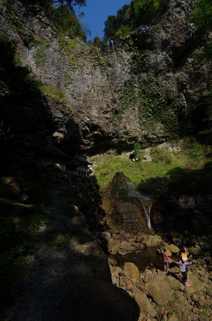 超広角で写しているので小さく写ってますが見事な滝で、下に女性が2人写ってます。
