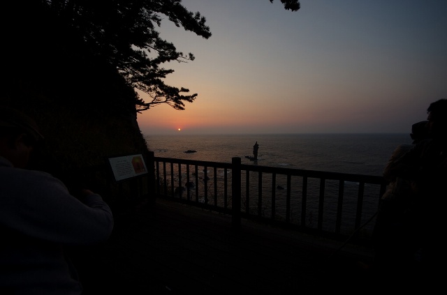 840mほど歩いて標高40mまで下ったところに第二展望台というのがあって、そこがローソク岩と夕日がよく見える場所なんだとこんなところで気が付きました。