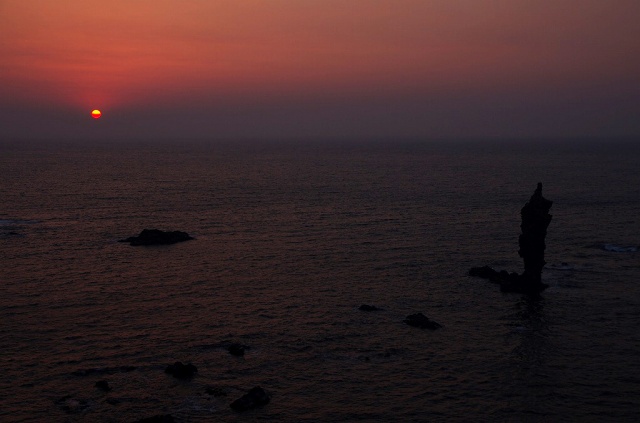 民宿の女将さん曰く、真夏は空気がクリアーで海も穏やかでいいんだけど、ローソクの火っぽい感じにはならないので、雲が多い秋がオススメとのこと。