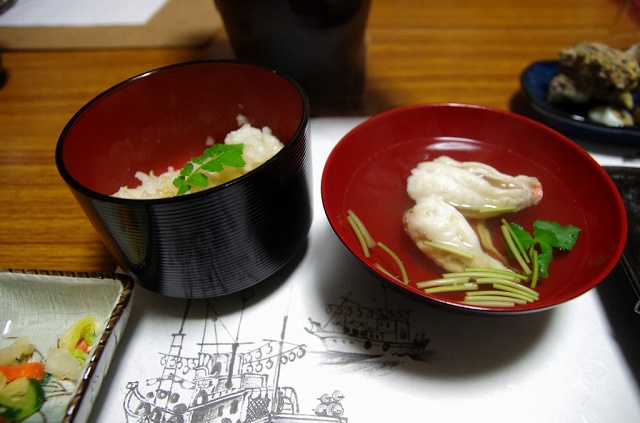 お吸い物はレンコダイ、ご飯は筍ご飯です。