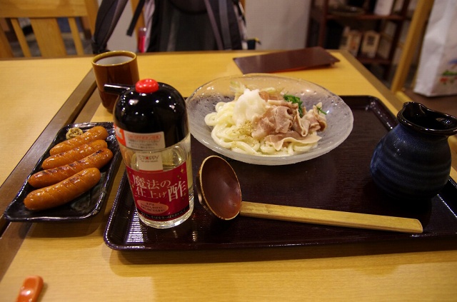 松江駅の食堂街で欲求の赴くままに豚しゃぶうどんにウインナーを注文。