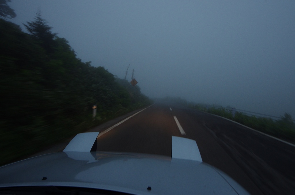 盛岡のあたりで雨に振られたのですが、「曇っててもガスってても藤七温泉に入りたい」との要望だったので構わず進んでいきます。