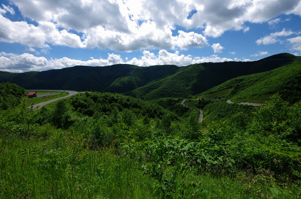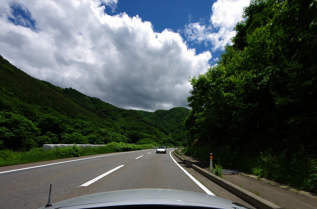気象庁の天気分布予報を信じて岩手県中心部を目指して走っていたのですが、八幡平を下ると七時雨山方面に晴れ間が見えたので、そちらにハンドルを切りまし