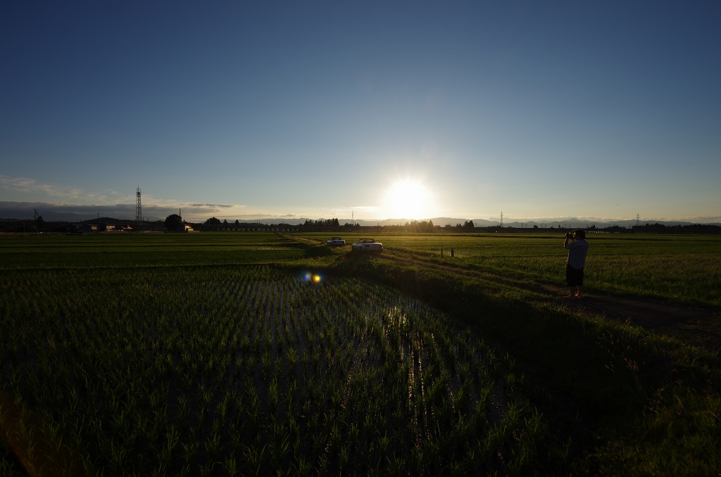最後の最後に太陽が沈むタイミングで田んぼ地帯へ。