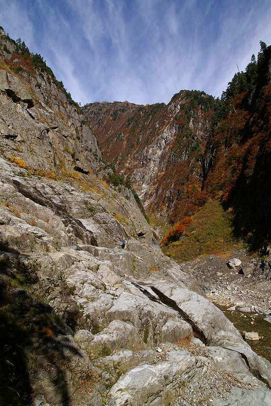 せっかくの晴天ですが、あまりに谷が深すぎて日が入りません。それがまた雰囲気満点なのです。(おじいさん写ってます)
