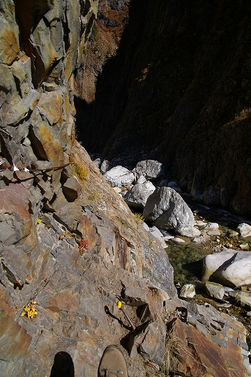 あ、一か所だけワイヤーが伸びているところがあって、ワイヤーをつかんでいたら、谷側に体が傾き、あわてて岩にしがみつき直した場所が一か所だけありました。あそこは焦った。