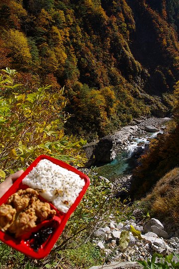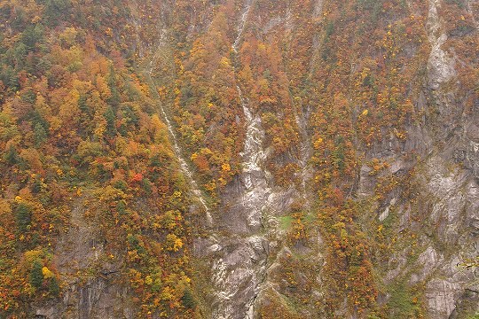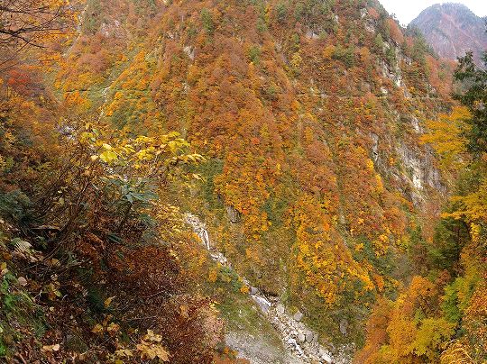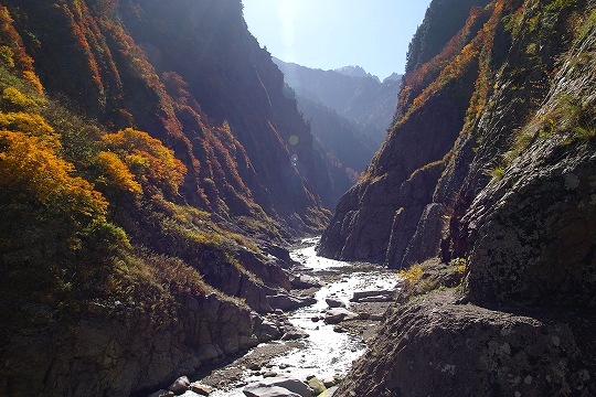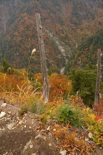 小屋までの距離が18kmぐらいあるので、トローリーバスの始発到着時間出発だと、秋のこの季節、とっとと行かないと日没に間に合わなくなります。コースタイムは7時間強、私の場合だと、撮影しながらでちょうどコースタイムなので黒部ダムを8時に出発して15時すぎには到着する目算です。