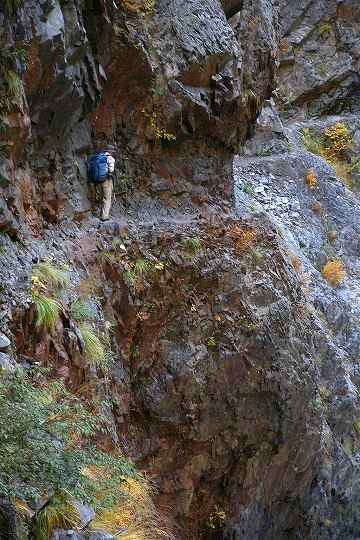 ここの高度感はなかなかで、足を踏み外せば300m下まで一気に落下です。道幅は50cmから1m。