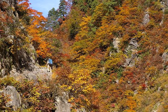 見事な紅葉の中をひたすら歩いて行きます。