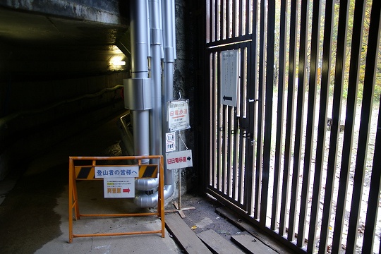志合谷に近づいてわかりました。谷の脇から小さな隧道に入ることになっています。看板には「懐中電灯必携」の文字が。