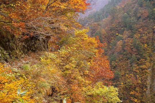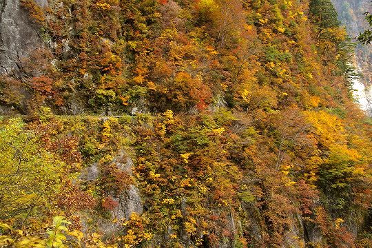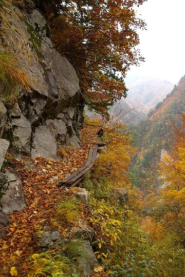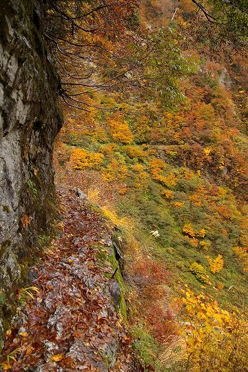 しかし、歩道なんて生易しいものではなく、道幅30cmも無い場所もあります。落ちたら冷たい黒部川直行です。写真だとわかりにくいかもしれませんが、これも道です。