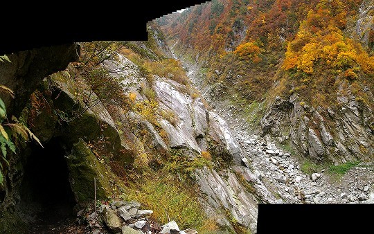 水平歩道が細く伸びているのがわかるでしょうか。ここからスケールを逆算してもらえれば、どれだけすごい規模の山肌か分かると思います。(水平歩道は人が立てる高さがあります。この写真は28mm 4枚合成のパノラマ写真です。4枚の露出が合っているのはAEロック機能を生まれて初めて使ったからです)